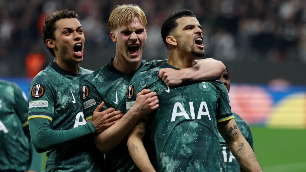 Frankfurtâs best chances came late, with Rasmus Kristensen firing two scuffed efforts that failed to trouble Guglielmo Vicario in the Tottenham goal. Despite nearly eight minutes of stoppage time, Spurs held their nerve, with Van de Ven and Romero clearing dangerous balls into the box as Frankfurt threw bodies forward.